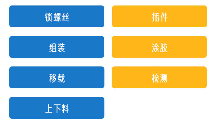 臺達垂直多關節工業機器人,具有六軸自由度、腕部中空設計、多種安裝及友善的操作界面,可廣泛應用于3C電子、電子電機、金屬加工與橡塑料業,并滿足檢測、組裝、涂膠、移載、上下料、搬運、包裝、鎖螺絲等應用領域,是制造業者邁向智能制造的重要伙伴。