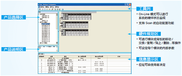 全方位整合:程序編輯 + 硬件規劃 + 網絡規劃 + 數據示波器與數據紀錄器 + 整合運動控制編輯