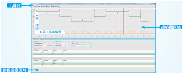 - 資料示波器:提供高速的數據記錄能力,其最快的紀錄時間間隔可以為1個CPU掃描時間??勺層脩暨M行程序的邏輯分析時更有效率